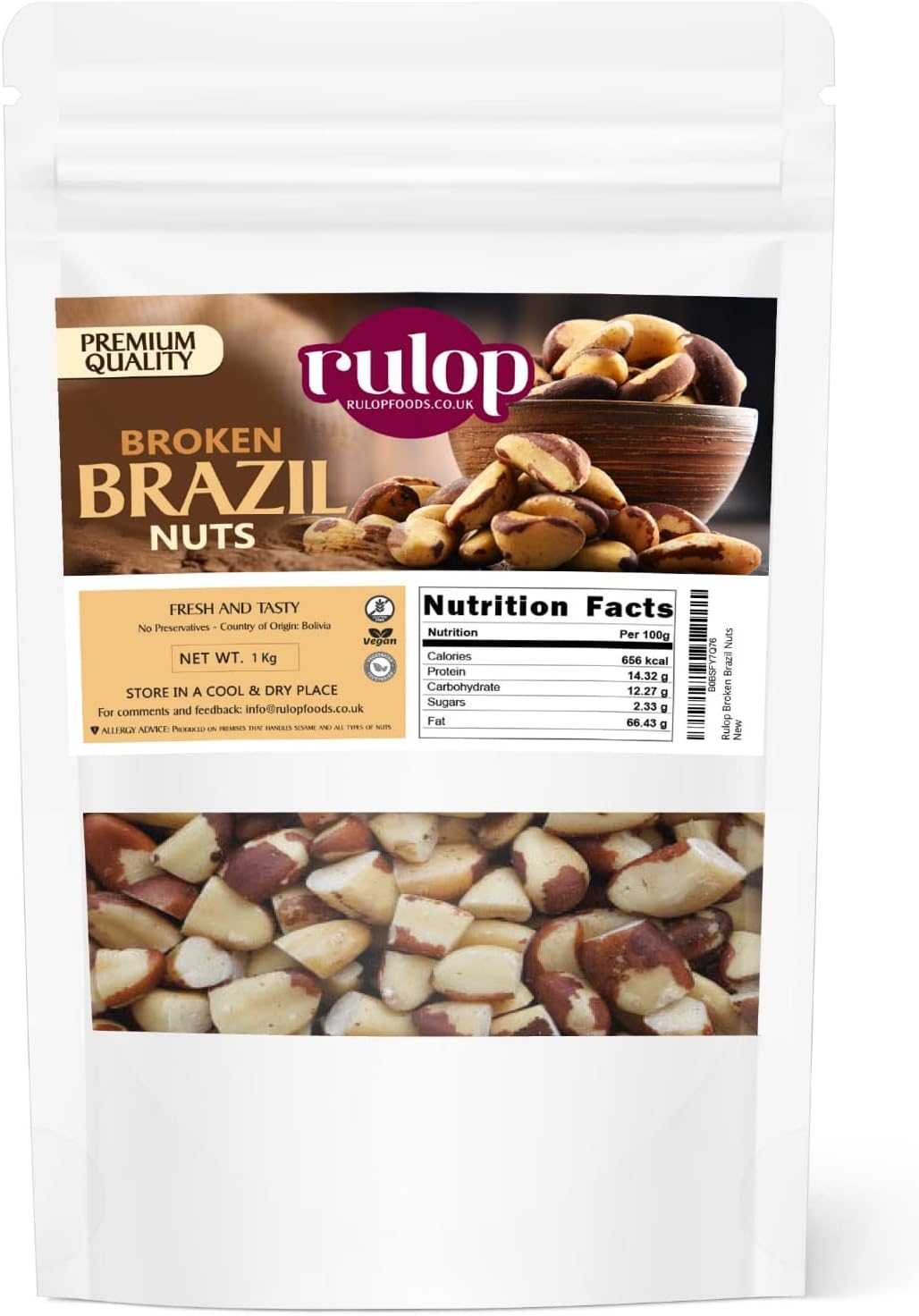 Brazil nuts are one of the largest nuts ever. They have a buttery, mild and sweet taste. They are most often eaten on their own, but you may also see them as part of breakfast mixes and muesli bars. Rulop Broken Brazil Nuts are fresh, crunchy, and 100% vegan friendly.